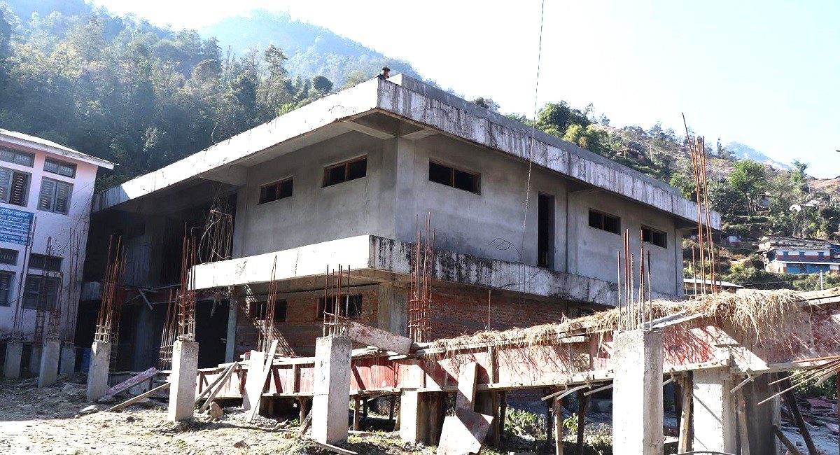 धवलागिरी गाउँपालिकाको पालिका स्तरीय अस्पताल भवन : तीन पटक म्याद थप गर्दा काम अधुरै