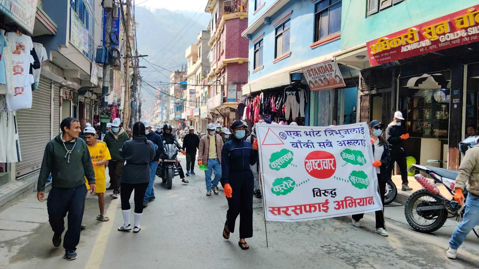 बेनीबजारमा महावीर पुनका समर्थकद्वारा सरसफाइ अभियान