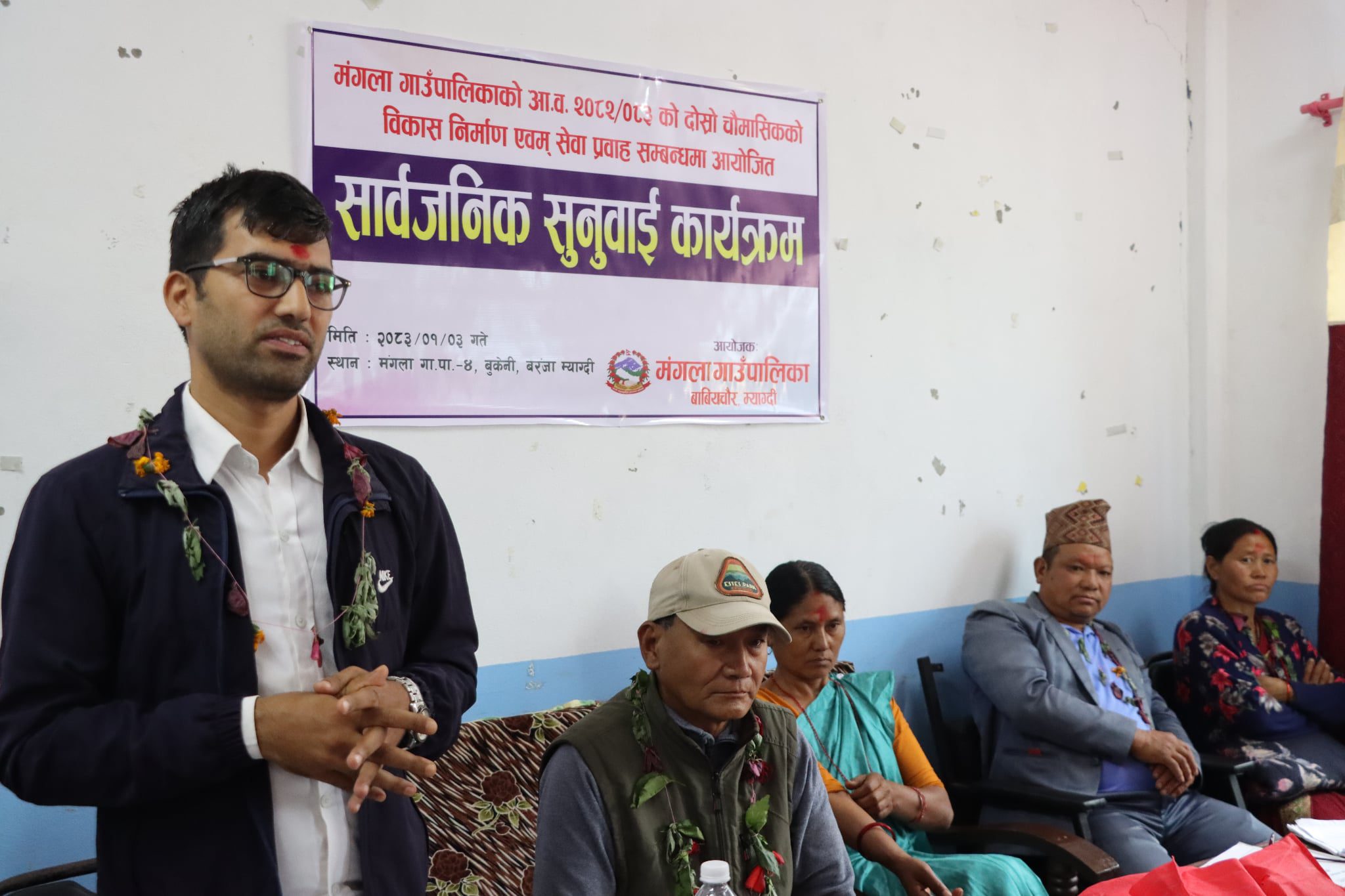 बेनी, ३ बैशाख । मंगला गाउँपालिकाले आर्थिक वर्ष २०८२÷०८३ को दोस्रो चौमासिक सार्वजनिक सुनुवाइ सम्पन्न गरेको छ । वडा नं. ४ बरंजा, बुकेनीस्थित वडा कार्यालयको सभाहलमा आयोजित कार्यक्रममा सहभागी स्थानीयवासीहरूले विकास निर्माण कार्यलाई पारदर्शी बनाउन, योजना छनोटमा प्राथमिकता निर्धारण गर्न तथा कृषि र पशुपालनका अनुदान वास्तविक किसानसम्म पुग्ने व्यवस्था गर्न आग्रह गरेका छन् ।सार्...