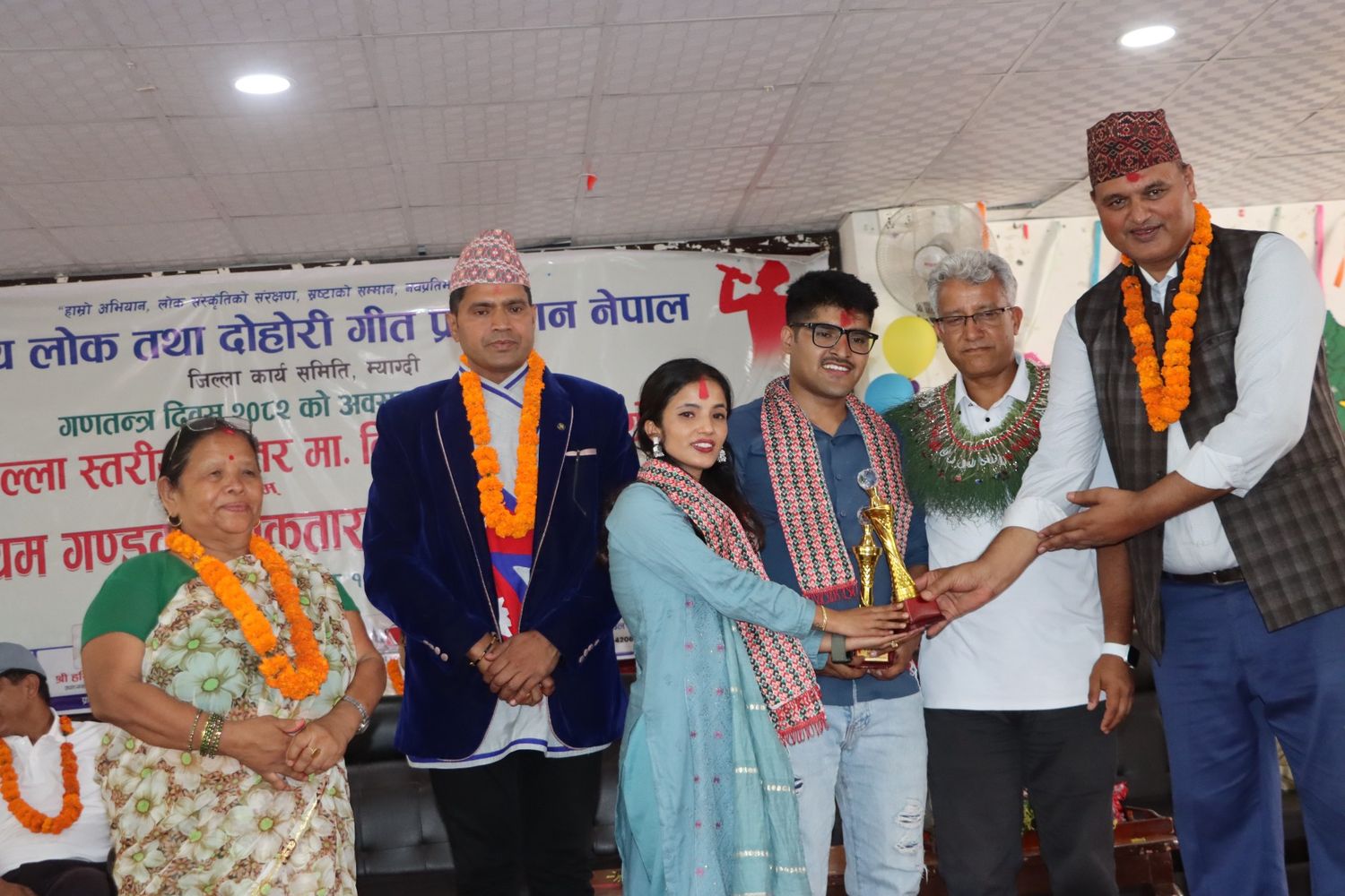 म्याग्दी जिल्लाको कला, संस्कृति संरक्षण र विकासमा पु¥याएको योगदान वापत सम्मान गरेको प्रतिष्ठानका अध्यक्ष जिसीले बताउनुभयो । नगर प्रमुख केसीले लोक संस्कृतिको संरक्षणका लागि प्रतिभाको पहिचान र प्रर्वद्धनका कार्यक्रमलाई निरन्तरता दिन अनुरोध गर्दै त्यसमा नगरपालिकाले साथ दिने बताउनुभयो ।
