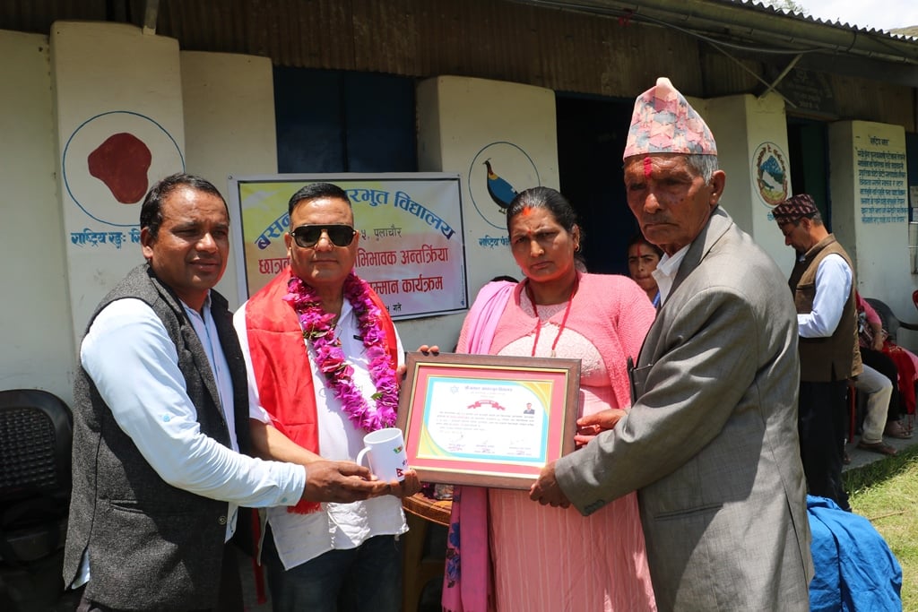 समाजसेवी बानियाँले आफ्नो व्यक्तिगत पहलमा नगद ४० हजार रुपैयाँ बराबरको पोशाक र स्टेशनरी सहयोग गर्नुभएको थियो । १८औं गणतन्त्र दिवसको अवसर पारेर विद्यालयमा छात्रवृत्ति वितरण, अभिभावक अन्तत्र्रिmया एवं सहयोगी व्यक्तित्वलाई सम्मान गर्नुका साथै विद्यार्थीलाई उक्त सामग्री सहयोग गरिएको छ । कार्यक्रममा विद्यालयमा अध्ययनरत विभिन्न २५ जना विद्यार्थीहरुलाई विद्यालय पोशाक अन्तर्गत एकएक सेट ट्र¥याकसुट र स्टेशनरीस्वरुप कापीकलम वितरण गरिएको विद्यालयले जनाएको छ ।