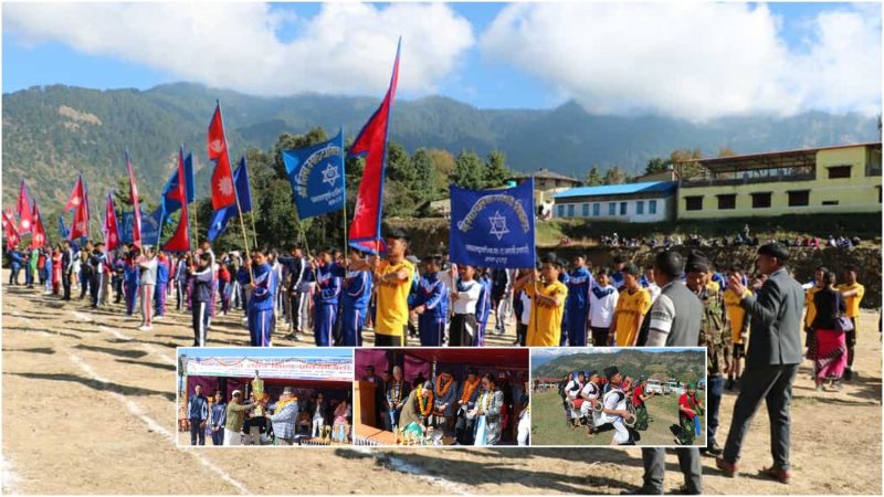 म्याग्दी ।म्याग्दीको गाउँपालिका–८,नागीमा छैटौं अन्तर विद्यालय स्तरीय राष्ट्रपति रनिङ शिल्ड प्रतियोगिता सुरु भएको छ । गाउँपालिकाको आयोजना र नांगी स्थित हिमाञ्चल माविको सह–आयोजनामा शुक्रबारदेखि राष्ट्रपति रनिङ शिल्ड प्रतियोगिता सुरु भएको हो । प्रतियोगिताको जिल्ला समन्वय समिति म्याग्दीकी कार्यवाहक प्रमुख डिलकुमारी खत्रीले उद्घाटन गर्नुभयो ।अन्तर विद्यालयहरुबीच प्रतिसर््पर्धा हुने छैटौँ राष्ट्रपति रनिङ शिल्ड प्रतियोगितामा अन्नपूर्ण गाउँपालिमा सञ्चालित विभिन्न १२ वटा विद्यालयहरुले सहभागिता जनाएका छन् । सहभागी विद्यालयहरुका २ सय ७० जना विद्यार्थी खेलाडीहरुले विभिन्न प्रतियोगितामा प्रतिस्पर्धा गर्नका लागि भाग लिएका छन् ।
