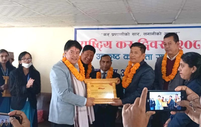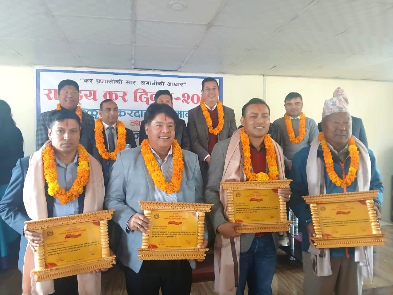 आन्तरिक राजस्व कार्यालय बागलुङका प्रमुख कर अधिकृत प्रमोद कुमार श्रीवास्तवले साविक धौलागिरी अञ्चलका चार जिल्लाका उत्कृष्ट करदाताहरूलाई सम्मान गरिएको बताउनुभयो । उहाँले वर्षभरी धेरै कर तिर्ने करदाताहरूलाई हौसला प्रदान गर्न छनोट गरी सम्मान गरिएको बताउनुभयो ।