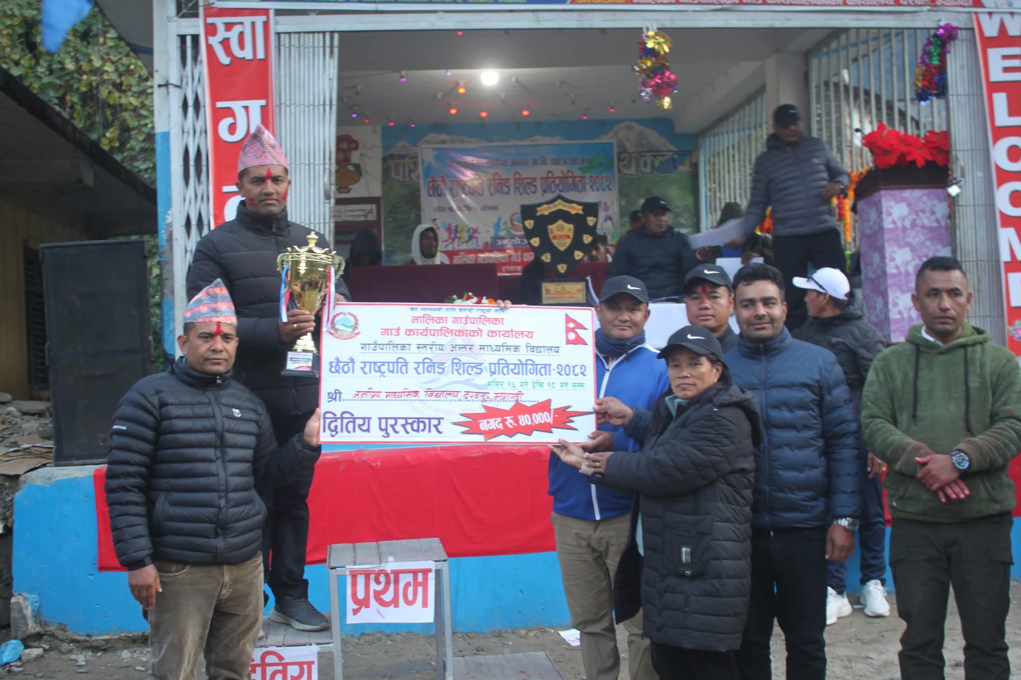 यसैगरी ९ स्वर्ण ,६ रजत र ६ कास्य पदक जितेको जनप्रिय मावि द्वितीय तथा तीन स्वर्ण ,एक रजत र ५ कास्य हात पार्दै तृतीय भएको राष्ट्रिय माविले क्रमशः ४० हजार ,३० हजार रुपियाँ सहित ट्रफी ,मेडल र प्रमाणपत्र हात पार्न सफल भए । विजेता र उपविजेताहरुलाई गाउँपालिका अध्यक्ष बेगप्रसाद गर्बुजा , उपाध्यक्ष लक्ष्मीदेवी घर्ती मगर पुन ,वडा नम्बर २ का वडा अध्यक्ष उदय बुढाथोकी ,कार्यपालिका सदस्यहरु दलबहादुर खड्काथोकी ,छरदेवी जुग्जाली र प्रतीक्षा बिक , शिक्षा शाखा अधिकृत अशोक रिजाल लगायतले पुरस्कार वितरण गर्नुभएको थियो ।