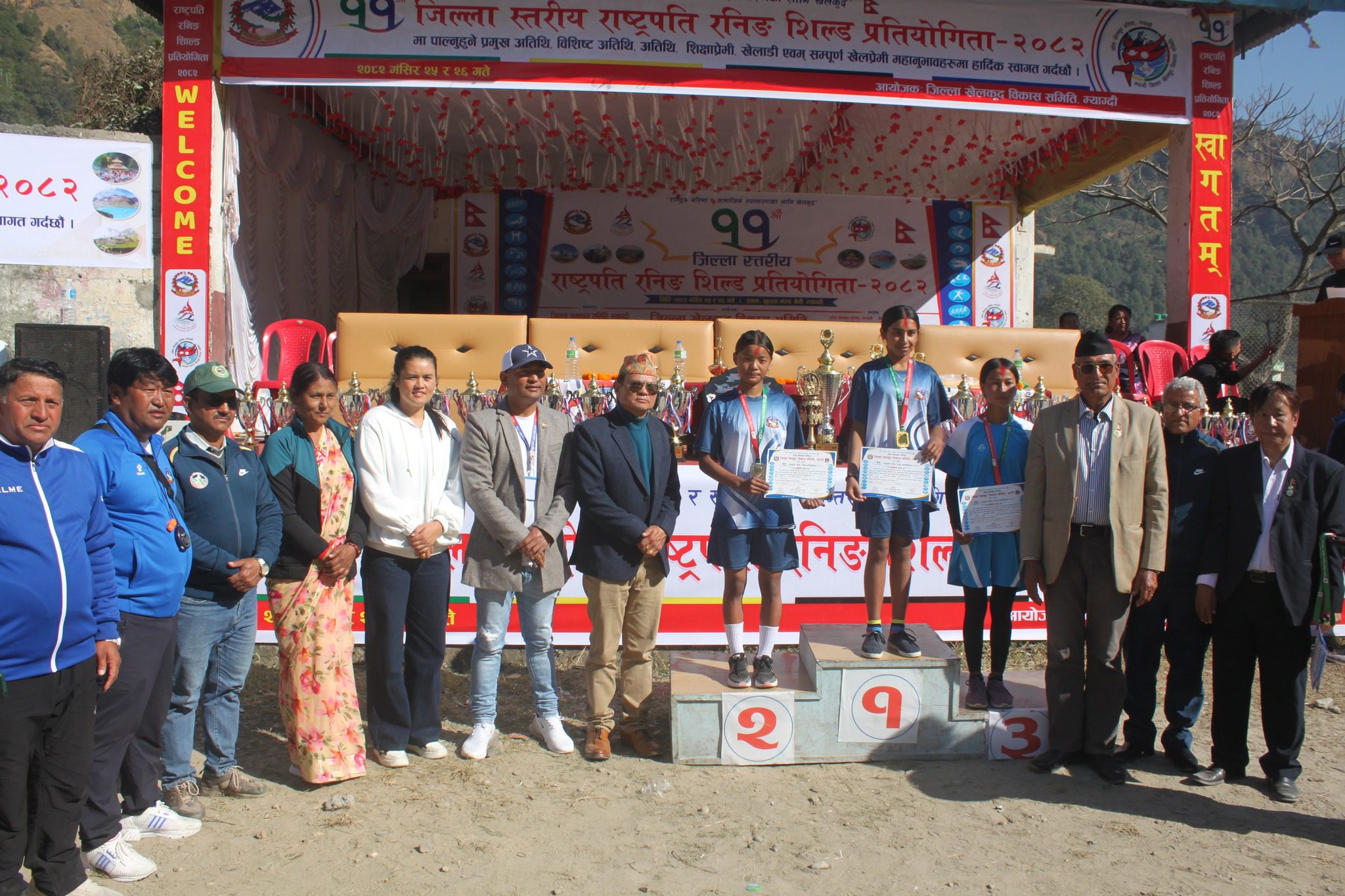 कार्यक्रममा जिल्ला समन्वय समितिका कार्यवहाक प्रमुख डिलकुमारी खत्री, बेनी नगरपालिकाका मेयर सुरत केसी र नेपाल पत्रकार महासंघ म्याग्दीका अध्यक्ष हरिकृष्ण गौतमले पालिका स्तरमा पहिचान भएका खेलाहरुलाई जिल्ला, प्रदेश हुँदै राष्ट्रिय स्तरसम्म पुग्नका लागि रनिङ्ग शिल्ड प्रतियोगिताले सहयोग पुग्नेमा जोड दिनुभएको थियो ।