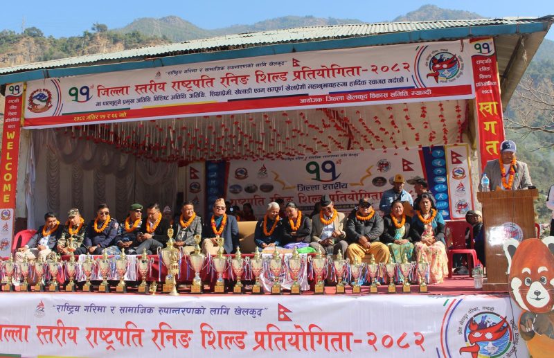 म्याग्दी । म्याग्दीको बेनीमा ११औँ जिल्ला स्तरीय राष्ट्रपति रनिङ्ग शिल्ड खेलकुद प्रतियोगिता सुरु भएको छ । जिल्ला खेलकुद विकास समिति म्याग्दीको आयोजनामा सञ्चालन भएको प्रतियोगिताको पूर्वराज्यमन्त्री खमबहादुर गर्बुजा ‘खम्बीर’ले उद्घाटन गर्नुभएको छ ।