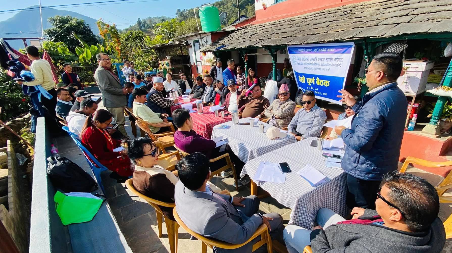 पोखरा । नेपाल आदिवासी जनजाति पत्रकार महासङ्घ (फोनिज) संघीय समितिको तेस्रो पूर्ण बैठक ११ बुँदे घोषणापत्र जारी गर्दै सम्पन्न भएको छ । पोखराको कालाबाङ सामुदायिक होमस्टेमा सम्पन्न बैठकले नेपाल पत्रकार महासंघको संस्थापक अध्यक्षको टुंगो लगाउनेगरी अध्ययन समिति गठनको पुनः माग गरेको छ ।