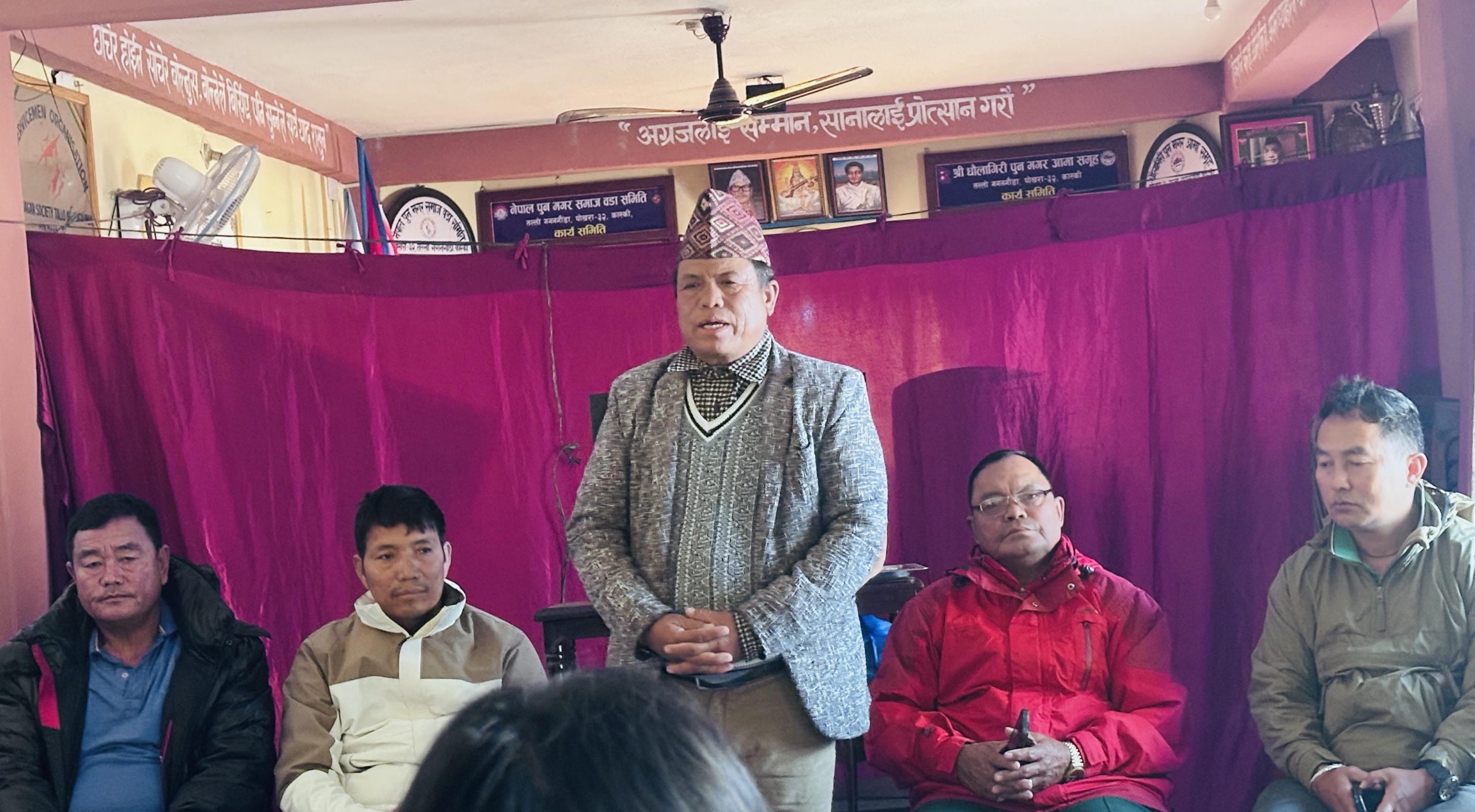 पोखरा । नेपाल पुन मगर समाज केन्द्रीय समितिको भातृ संगठन नेपाल पुन मगर संस्कृति, सञ्चार तथा प्रतिभा उजागर समितिको अध्यक्षमा देव चोचाङगी पुन मगर सर्वसम्मत निर्वाचित हुनुभएको छ । बुधबार पोखरा महानरपालिका–३२, स्थित तल्लो गगनगौडा पुन मगर समाज भवनमा भएको प्रथम भेलाबाट चोचाङ्गी मगरको अध्यक्षतामा ५४ सदस्यीय कार्यसमिति सहित नौ विदेश संयोजक सर्वसम्मत चयन भएको हो ।