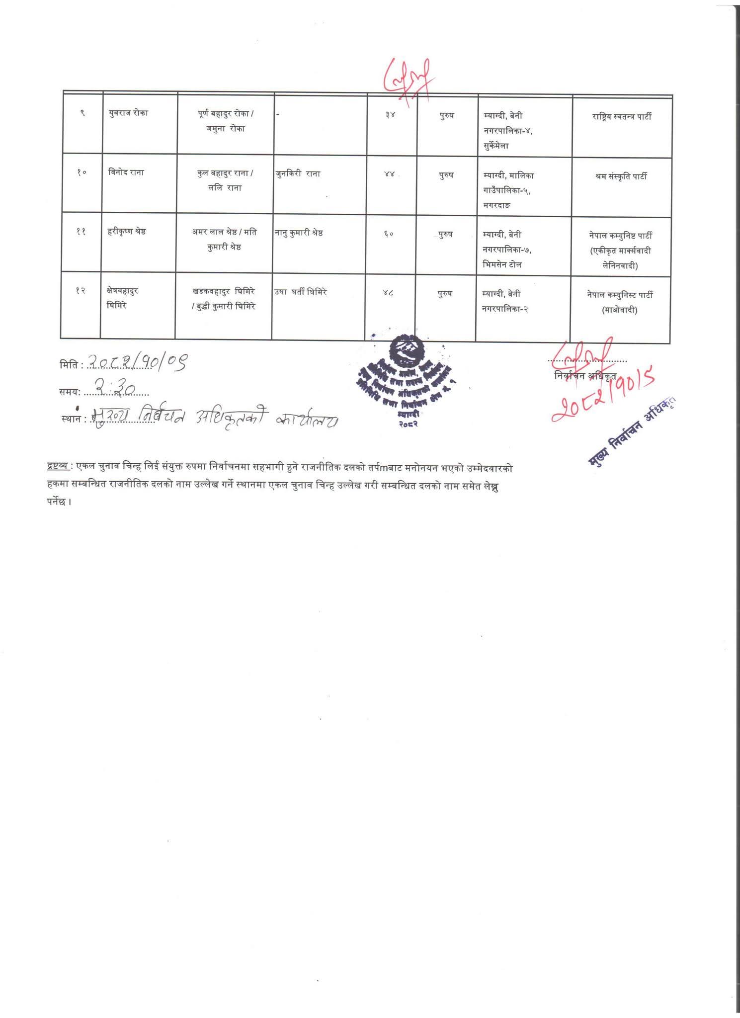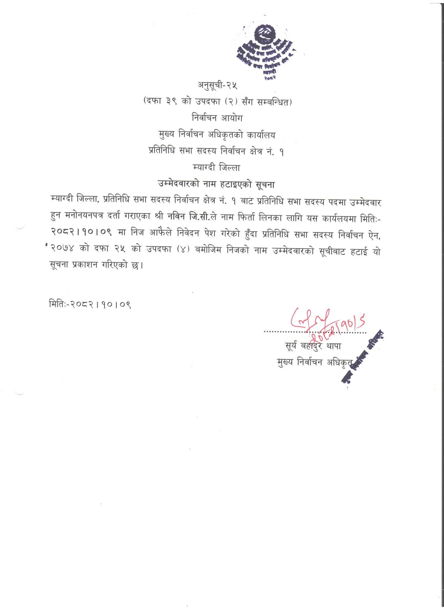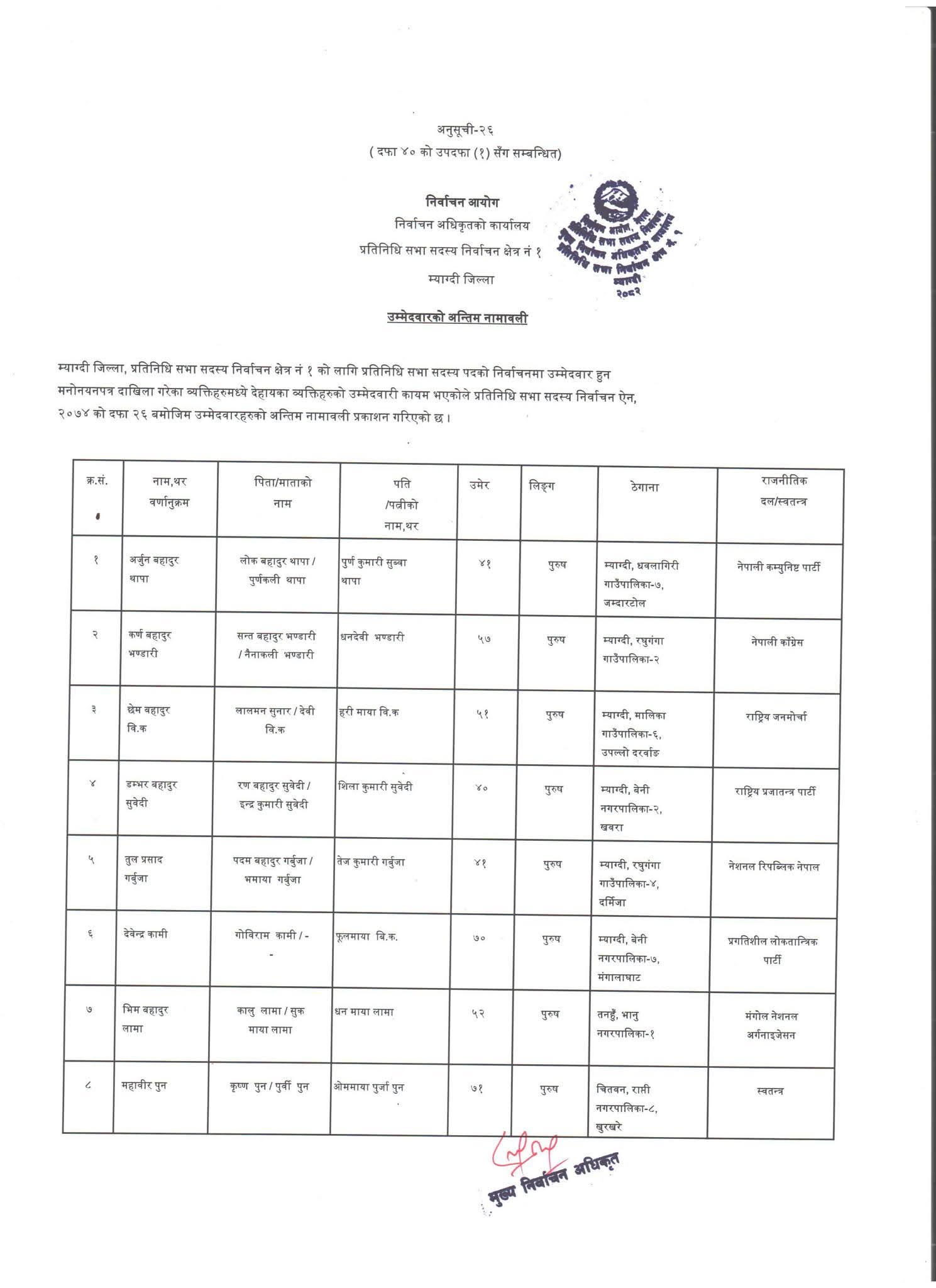 प्रतिनिधि सभा निर्वाचन : म्याग्दीमा एक जनाले मात्र फिर्ता लिए उम्मेद्वारी