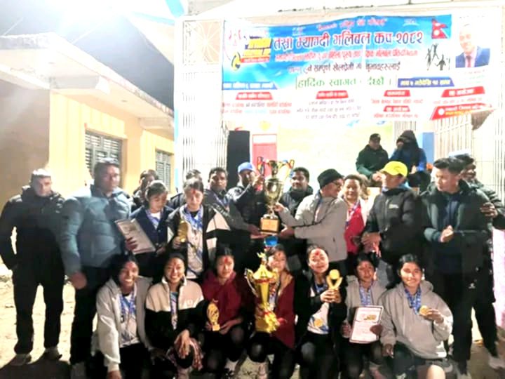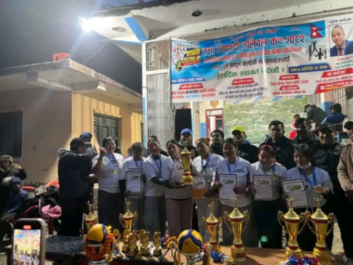 म्याग्दी । म्याग्दीको मालिका गाउँपालिका–६, दरबाङमा तेस्रो म्याग्दी कप छात्रा/छात्र तथा शिक्षक भलिबल प्रतियोगिता शनिबार सम्पन्न भएको छ। म्याग्दी जिल्ला भलिबल संघ म्याग्दीले आयोजनामा सम्पन्न भएको प्रतियोगिताको यु–२० तर्फ छात्रा तर्फ प्रकाश मावि प्रथम ,मंगला मावि द्धितिय भएको छ ।उक्त प्रतियोगितामा प्रकाश माविकी प्रीया बिक उत्कृष्ट खेलाडी, उत्कृष्ट स्पाईकर रिक्जना बोटे मंगला मावि,उत्कृष्ट डिफेन्डर धमिस्था शेरपुन्जा (प्रकाश मावि, उत्कृष्ट सेटर सुजना रोका प्रकाश मावि घोषित भएका छन् । त्यसैगरी .यु–२० छात्र तर्फको उपाधि मुक्तिमार्ग माविले जितेको छ । प्रतियोगितामा धनजनता मावि मुना फलियागाउँ उपविजेता भएको थियो ।