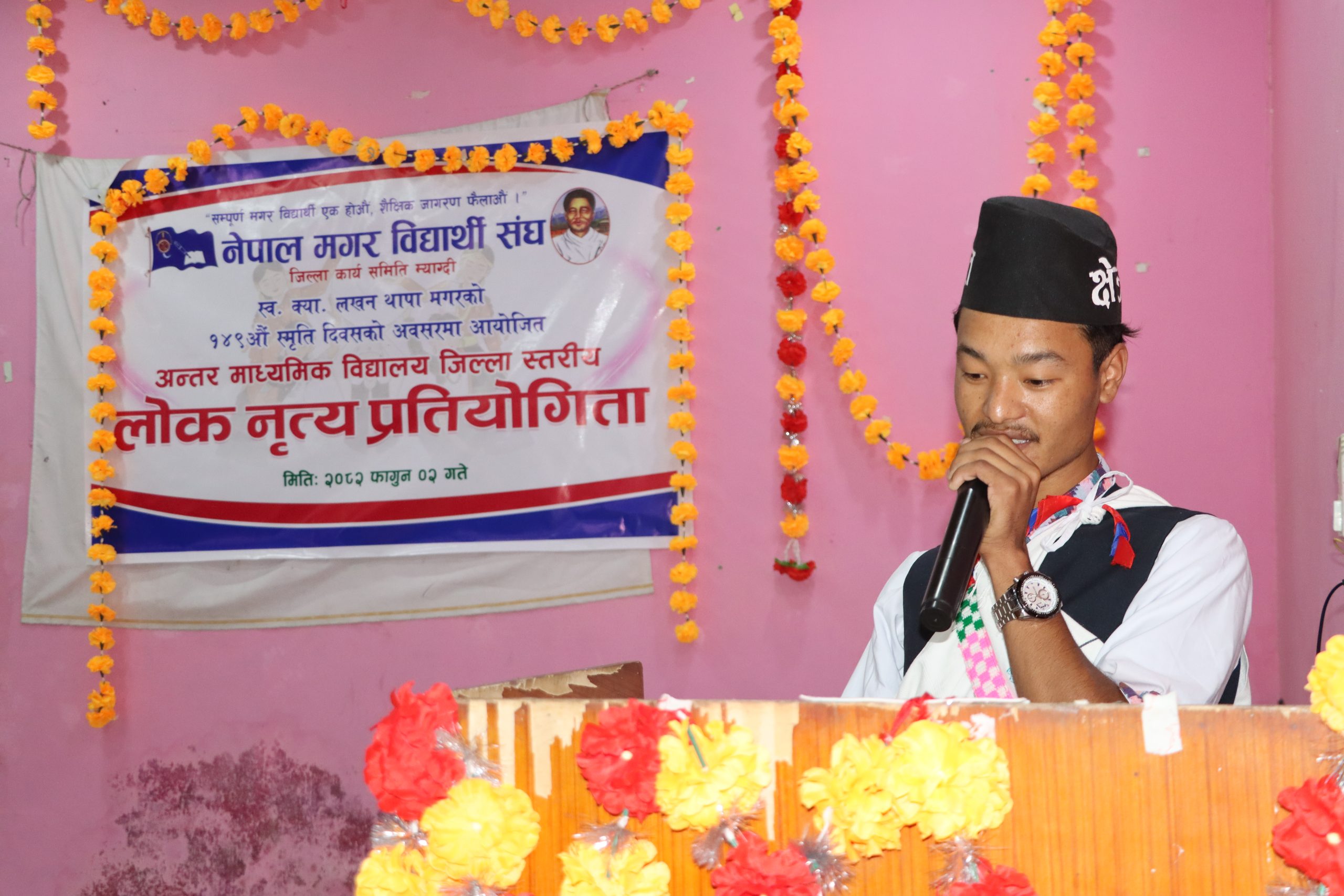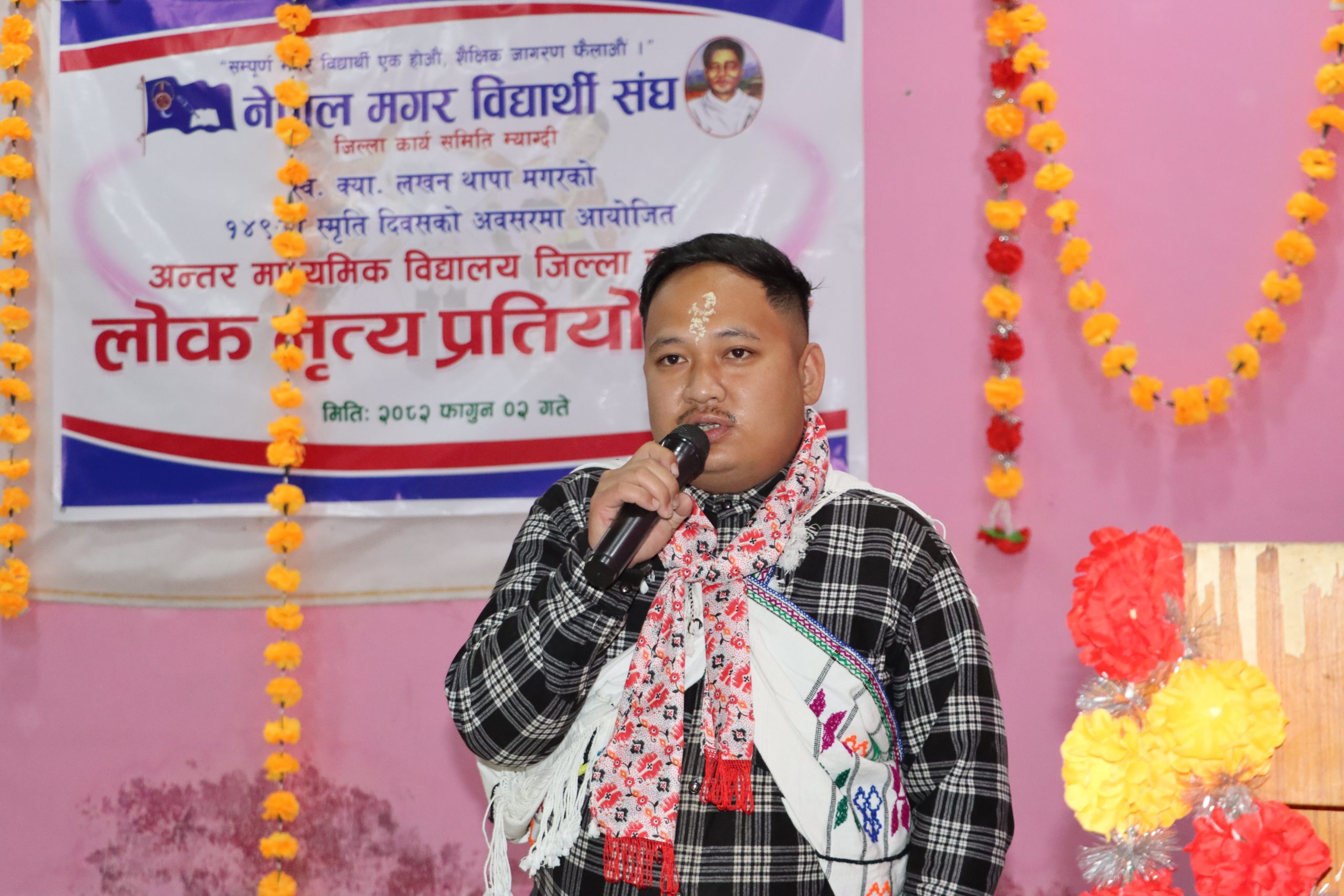 कार्यक्रमको उद्घाटन गर्दै नेपाल मगर संघ गण्डकी प्रदेश कार्यसमिति का सदस्य हिराबहादुर पुन मगरले विद्यालय तहदेखि नै विद्यार्थीहरूमा आफ्नै मौलिक संस्कृति, भाषा, भेषभूषा र परम्परागत लोकनृत्यप्रति गर्व गर्ने वातावरण सिर्जना गर्न यस्ता प्रतियोगिताले महत्वपूर्ण भूमिका खेल्ने बताउनुभयो । उहाँले शहीदहरूले देखाएको त्याग, आत्मबल र राष्ट्रनिष्ठा आजको पुस्ताले आत्मसात् गर्न सके मात्र सशक्त र सचेत समाज निर्माण सम्भव हुने उल्लेख गर्नुभयो ।