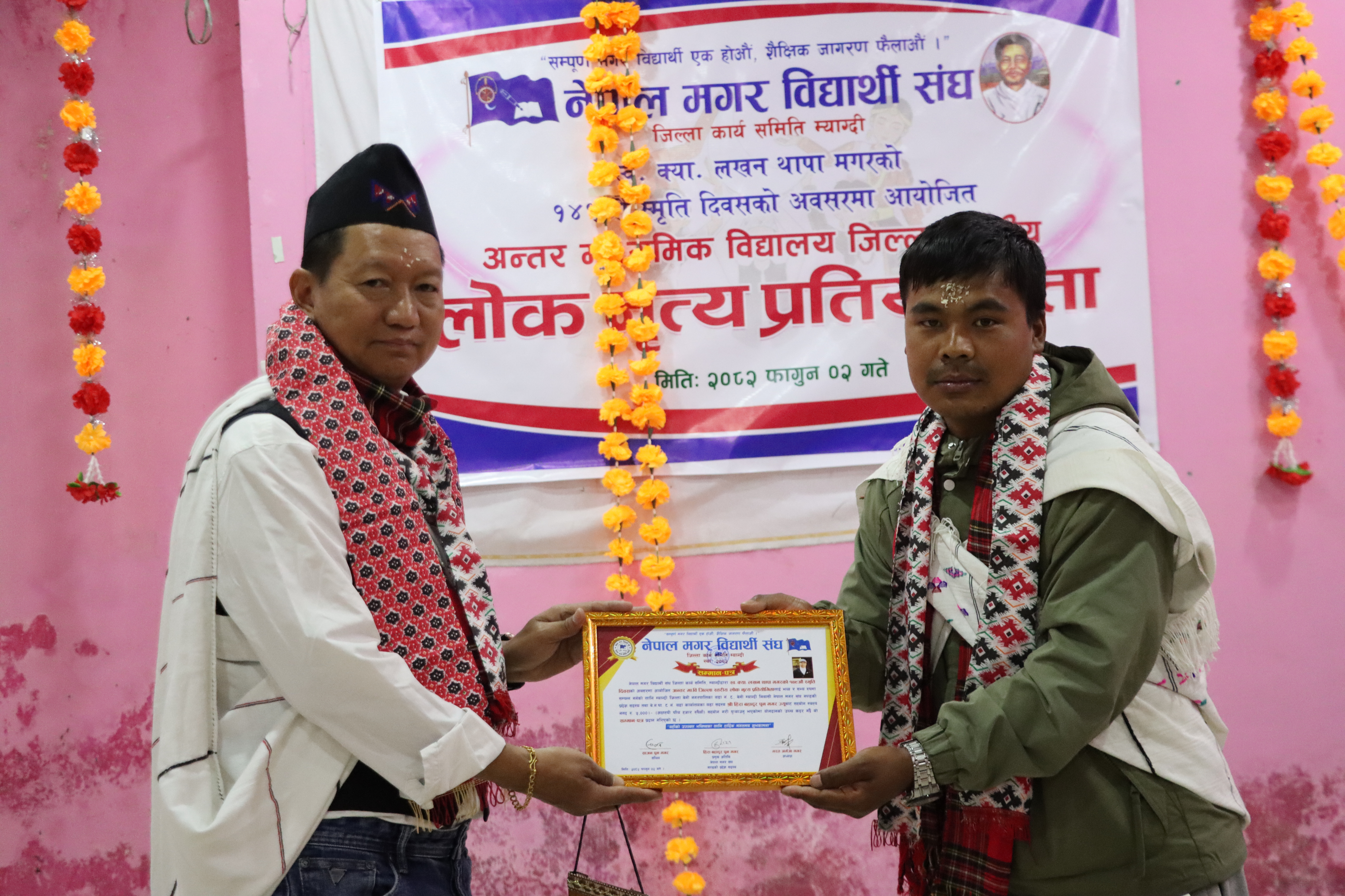 नेपाल मगर विद्यार्थी संघ म्याग्दीका अध्यक्ष भरत अर्मजा मगरको अध्यक्षता, सचिवालय सदस्य आइस्ना सेरपुजा मगरको स्वागत मन्तव्य तथा संघका सचिव साजन पुन मगरको सञ्चालनमा कार्यक्रम सम्पन्न भएको थियो ।
