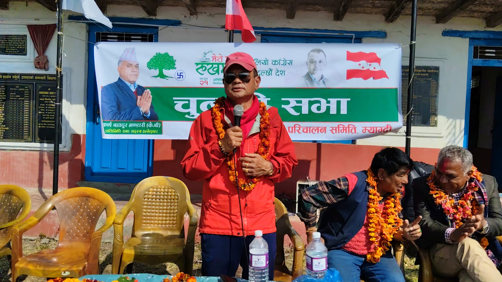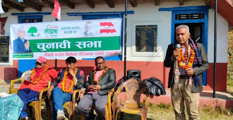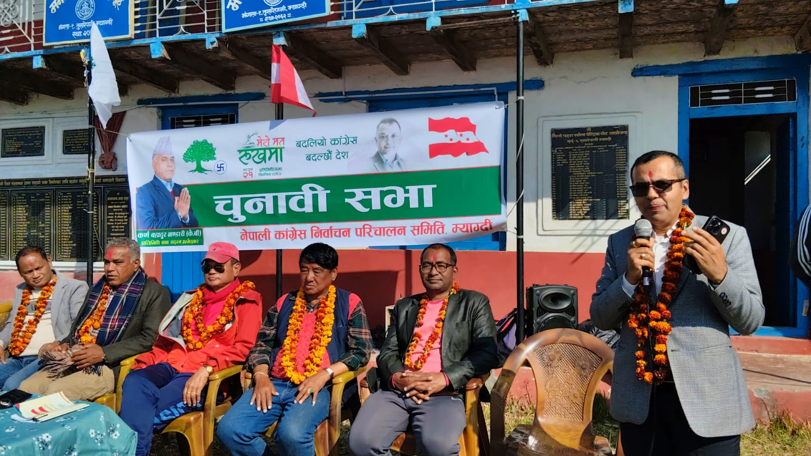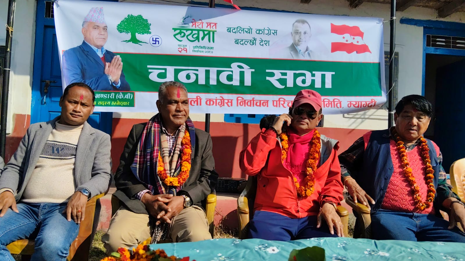 बेनी । नेपाली कांग्रेस म्याग्दीले आगामी २१ फागुनमा हुने प्रतिनिधि सभा सदस्य निर्वाचन लक्षित चुनावी सभा र घरदैलो कार्यक्रम बुधबार मंगला गाउँपालिकाको वडा नम्बर १,२,५ र बेनी नगरपालिका–४,का विभिन्न ठाउँमा सम्पन्न गरेको छ । तुसारेपानीमा आयोजित चुनावी सभामा कांग्रेस म्याग्दीका सभापति एवं निवर्तमान राज्यमन्त्री खमबहादुर गर्बुजा ‘खम्बीर’ ,प्रतिनिधि सभा सदस्यका उम्मेदवार केबी भण्डारी ,राष्ट्रिय पञ्चायत सदस्य नरबहादुर पुन ,युवा अनुसन्धानकर्ता लक्षमण रिमाल , वडा इकाई सभापति रामबहादुर खत्रीले बोल्नुभएको थियो ।