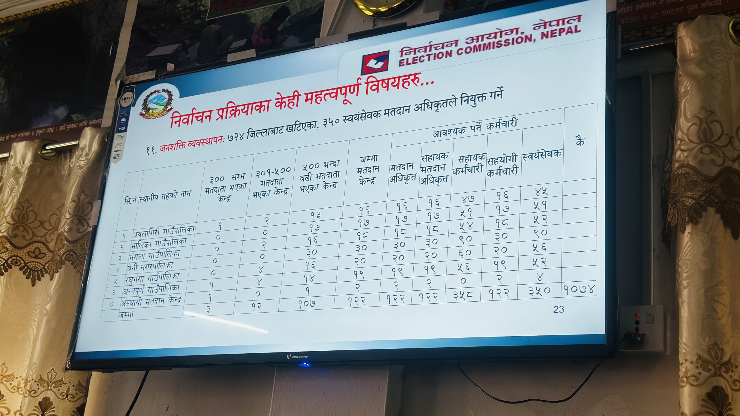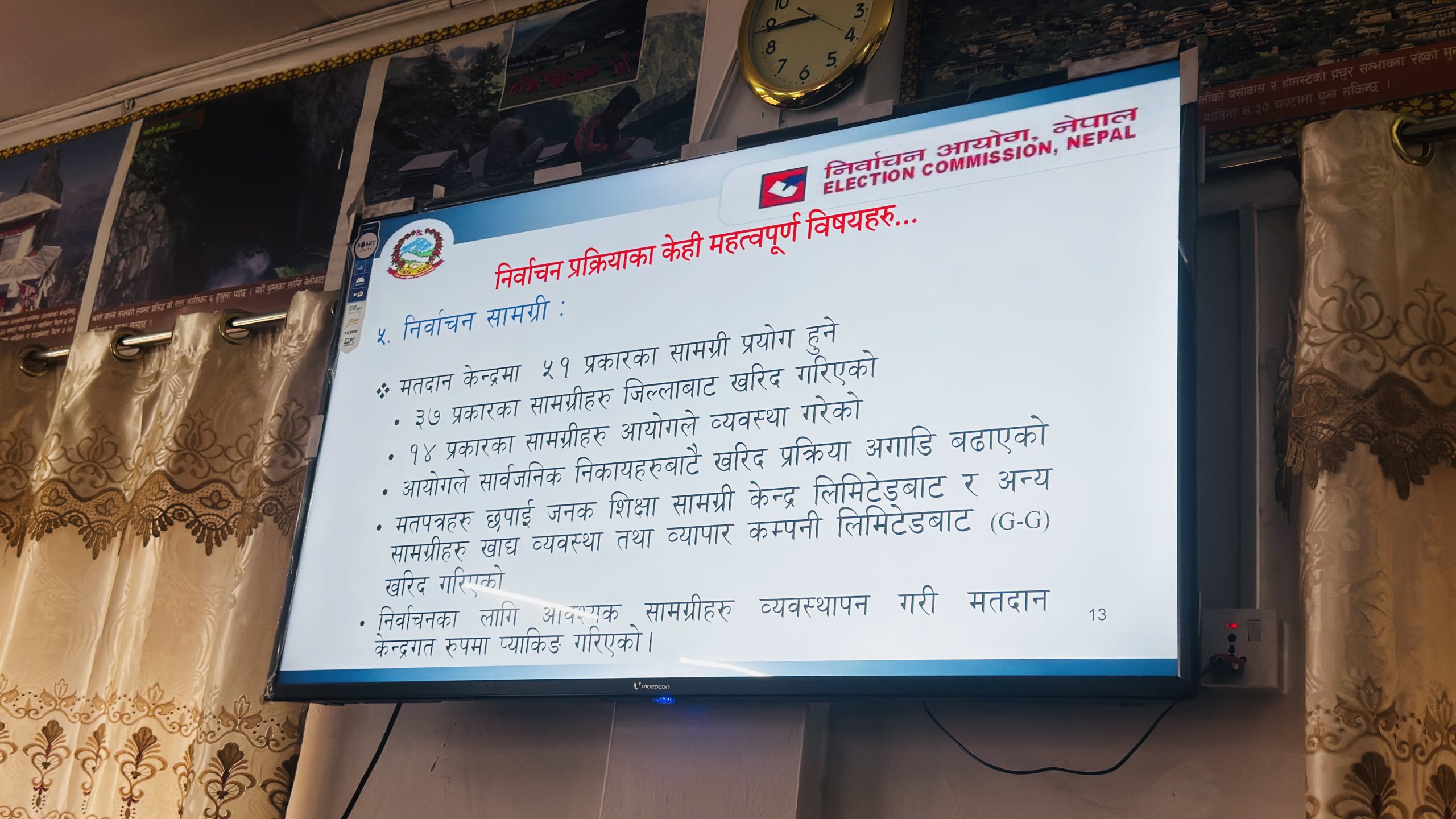 यसैगरी, जिल्ला निर्वाचन अधिकारी बिमल प्रसाद गौतम ले निर्वाचनका लागि आवश्यक मतपत्रसहित सम्पूर्ण निर्वाचन सामग्री जिल्ला आइपुगेको जानकारी दिनुभयो । उहाँका अनुसार सबै सामग्री मतदान केन्द्रअनुसार छुट्टाछुट्टै वर्गीकरण गरी सुरक्षित तवरले व्यवस्थापन गरिएको छ, जसले वितरण तथा प्रयोग प्रक्रियालाई सहज बनाउनेछ ।